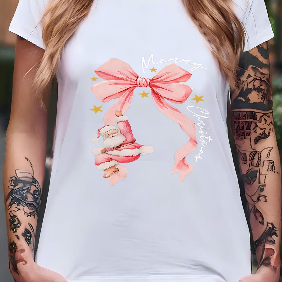® Coquette Merry Christmas With Santa Shirt, Christmas Santa Tee, Xmas Coquette Shirt, Holiday Women Gift, Pink Christmas Tee T-shirt