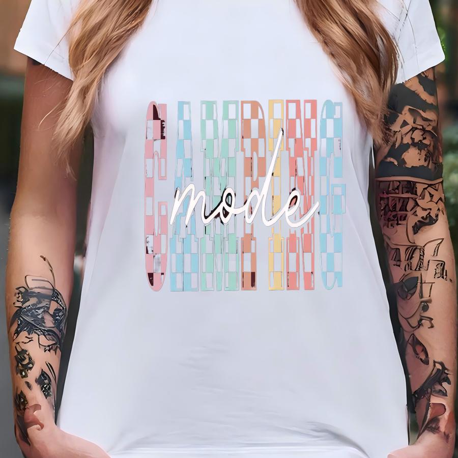Checkered Camping Mode Sweatshirt, Camp Lover Hoodie, Camping Crew Sweater, Family Camping Gift, Girls Camping Hoodie, Adventure Sweatshirt T-shirt