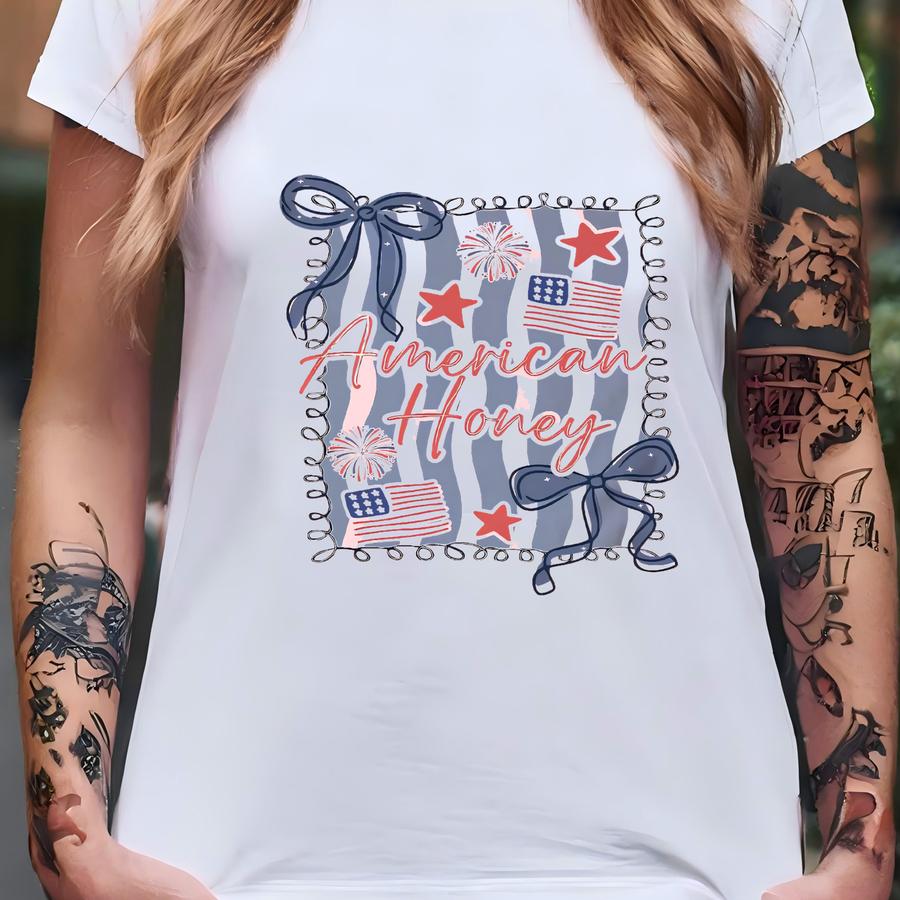 Coquette 4th Of July Shirt, Coquette Bow 4th Of July Women, American Honey Coquette Shirt, Summer America Shirt, Patriotic Coquette Shirt T-shirt