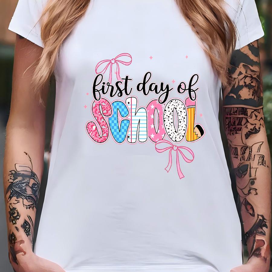 Coquette First Day Of School Shirt, Back To School Shirt For Teacher, School Student Shirt, First Day Of School Gifts, Checkered School Tee T-shirt