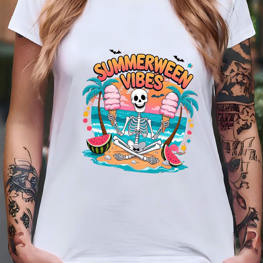 ® Summerween Ghost Shirt, Summer Vibes Tshirt, Skeleton Beach Vibes Shirt, Summer Tees For Halloween Lover, Hot Ghoul Summer T-shirt