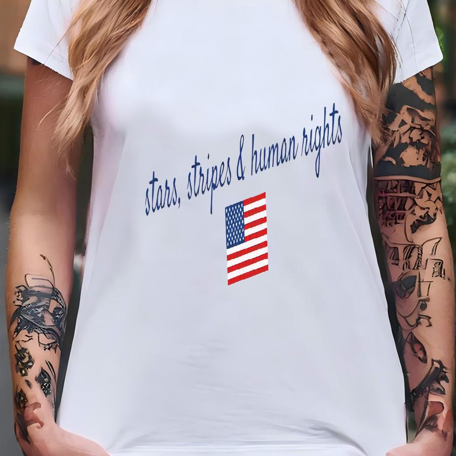 Stars, Stripes And Human Rights Baby Tee, Liberal Fourth Of July Protest Baby Tee, Progressive Baby Tee, Anti Y2k Style 90's Baby Tee T-shirt