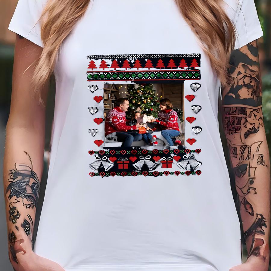 Custom Christmas Your Photo Hoodie, Couple Photo Sweater,matching Funny Holiday,xmas Party,custom Family Photo, Personalized Ugly Xmas Shirt T-shirt