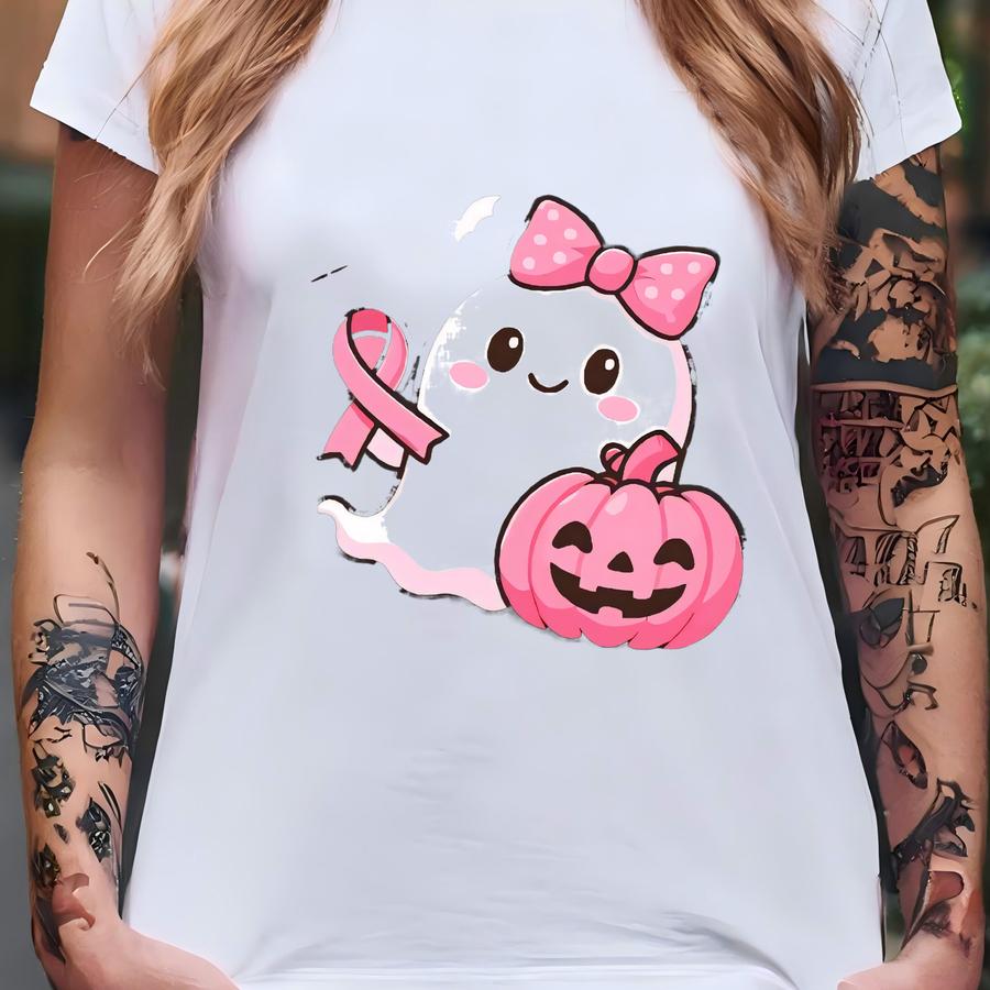 ® Breast Cancer Awareness Tee, Halloween Ghost Shirt, In October We Wear Pink Ghost Shirt, Cancer Pink Ribbon Shirt Gift T-shirt