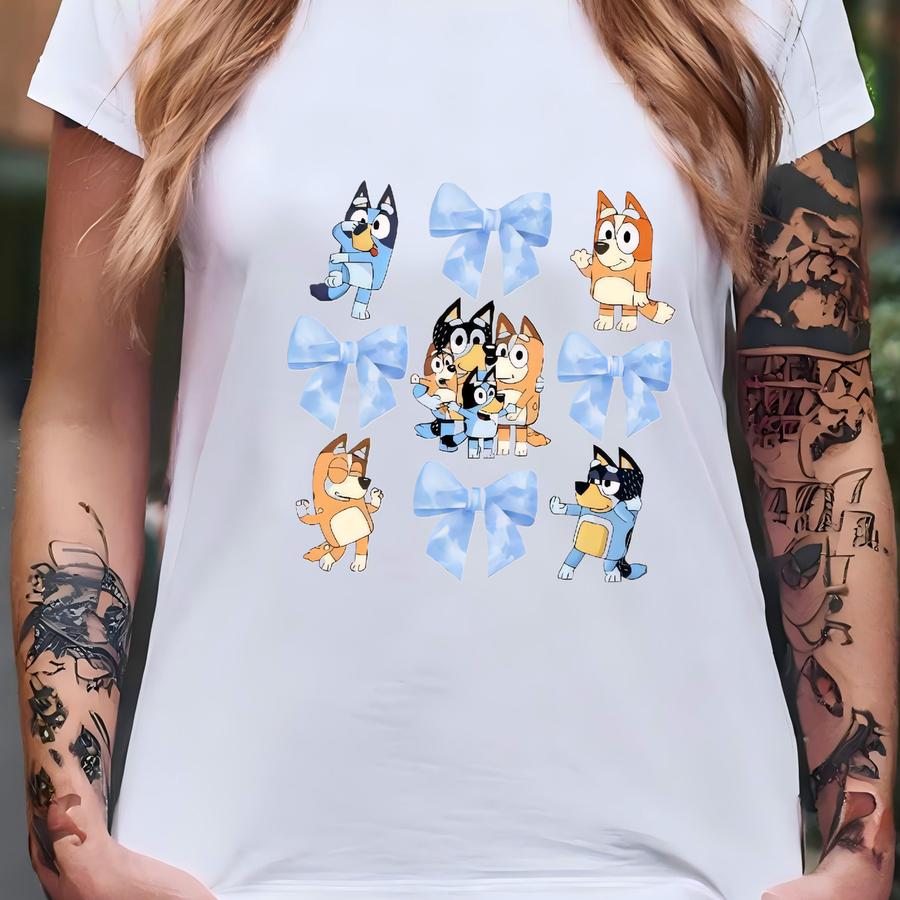 Coquette Bow Blue Dog Family Shirt: Funny Matching Couple Shirts T-shirt
