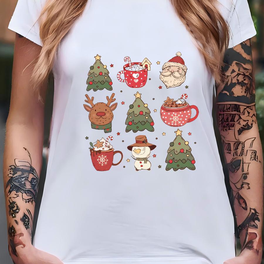 Christmas Icons Grid Shirt | Hot Cocoa Reindeer Santa Holiday Sweatshirt T-shirt