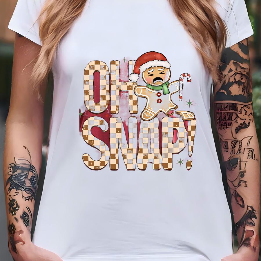 ® Oh Snap Shirt, Christmas Gingerbread Shirt, Checkered Holiday Shirt, Xmas Party Gift, Gingerbread Man Tshirt, Cozy Winter T-shirt