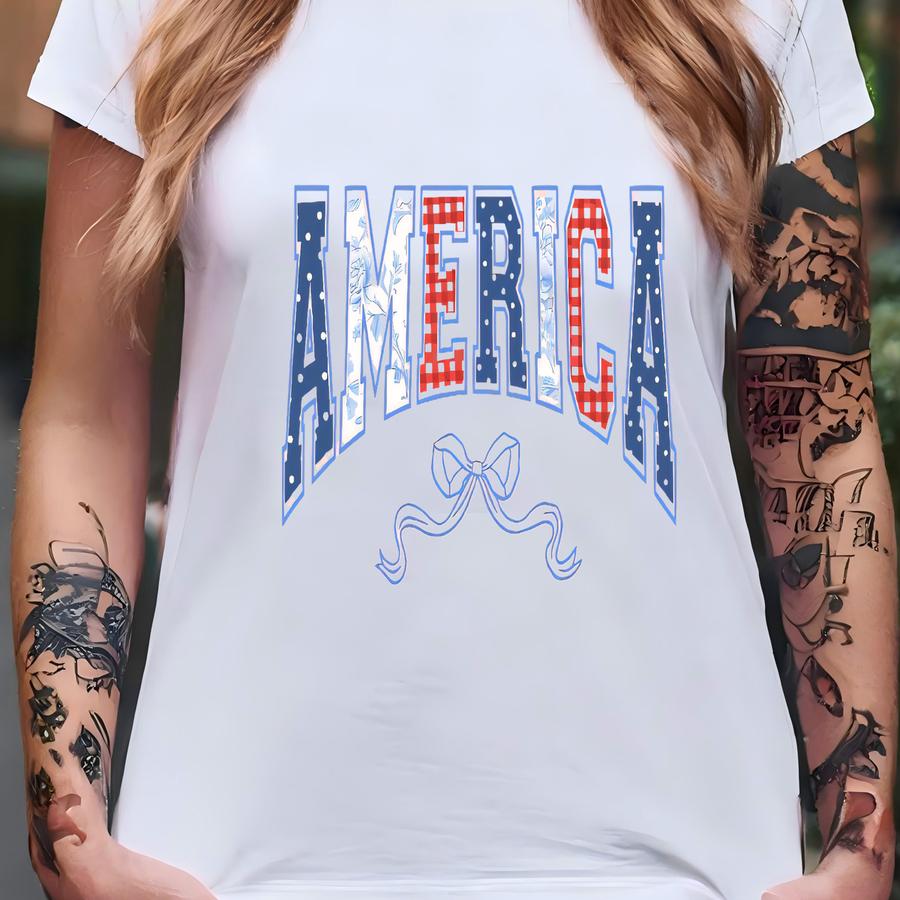 Coquette America Shirt, 4th Of July Shirt, Chinoiserie America Shirt, Independence Day Gift, Woman American Tee, Red White And Blue Tshirt T-shirt