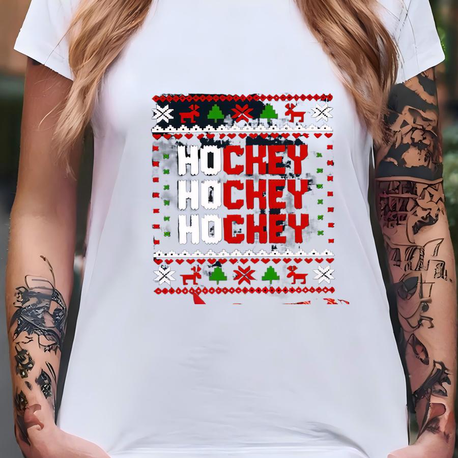 Christmas Ice Hockey Shirt, Ho Ho Hockey, Hockey Mom Gift, Hockey Player Gift, Hockey Lover Shirt, Xmas Sports Shirt, Hockey Ugly Christmas T-shirt