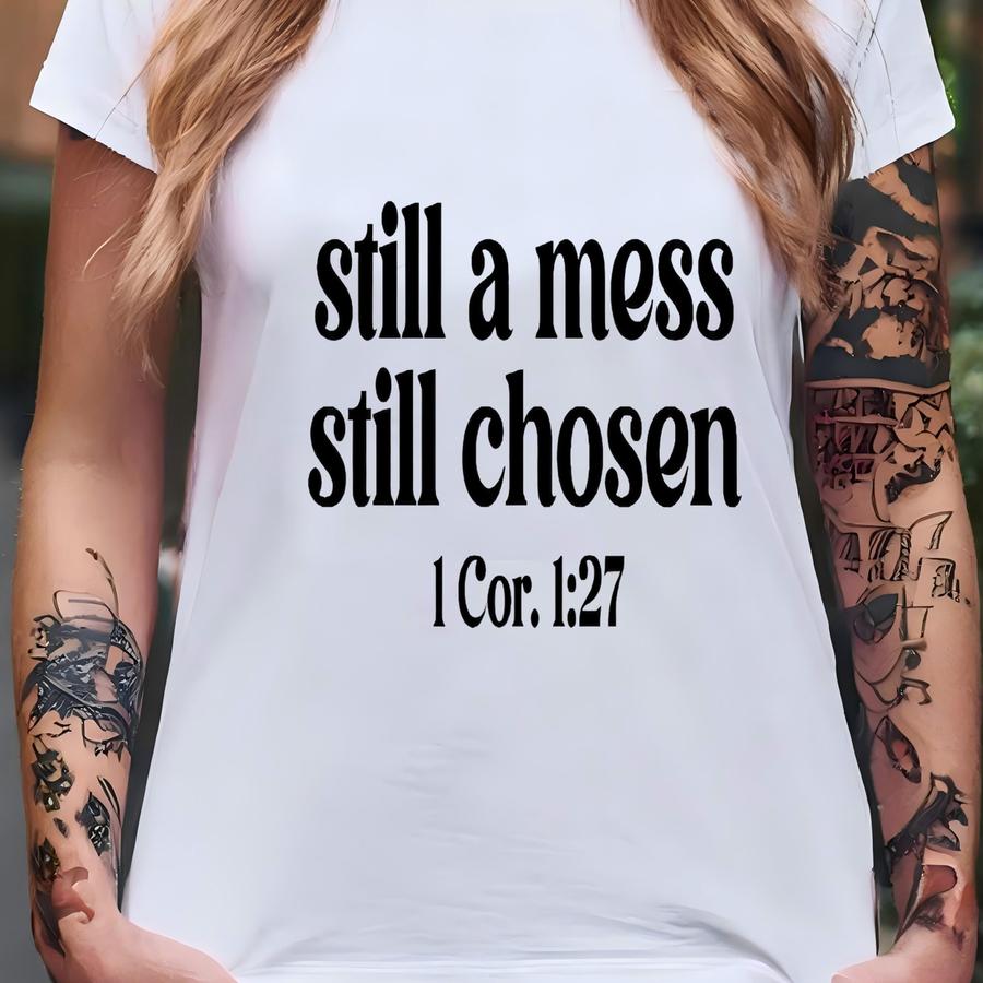 Bible Verse Christian Shirt, Still A Mess Still Chosen Distressed Minimalistic Tee, Christian Mom Gift, Religious Christmas Shirt, Faith Tee T-shirt