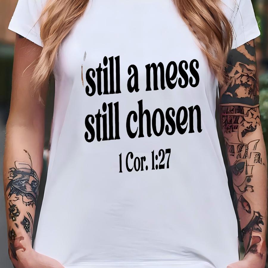 Still A Mess Still Chosen Sweatshirt, Scripture Hoodie For Women, Bible Verse Christian Sweater, Minimalist Faith Hoodie, Religious Mom Gift T-shirt