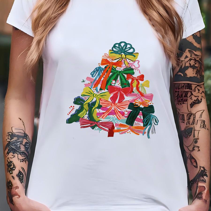 Coquette Christmas Tree Shirt, Girly Christmas Hoodie, Christmas Bow Tee, Womens Holiday Top, Xmas Vacation Shirt, Winter Season Tee T-shirt