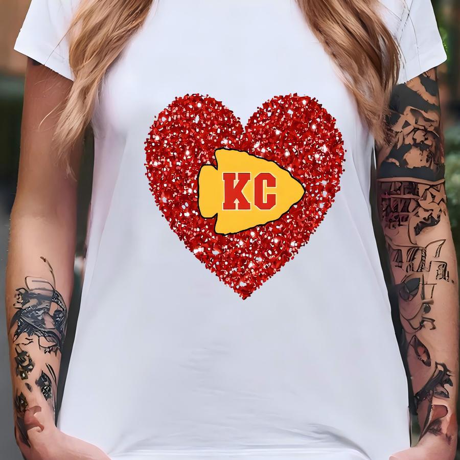 Vintage Kansas City Football Sweatshirt, Faux Kc Glitter Heart, Football Sweatshirt For Teen Girl, Gift For Mom, Red Kingdom Gift T-shirt
