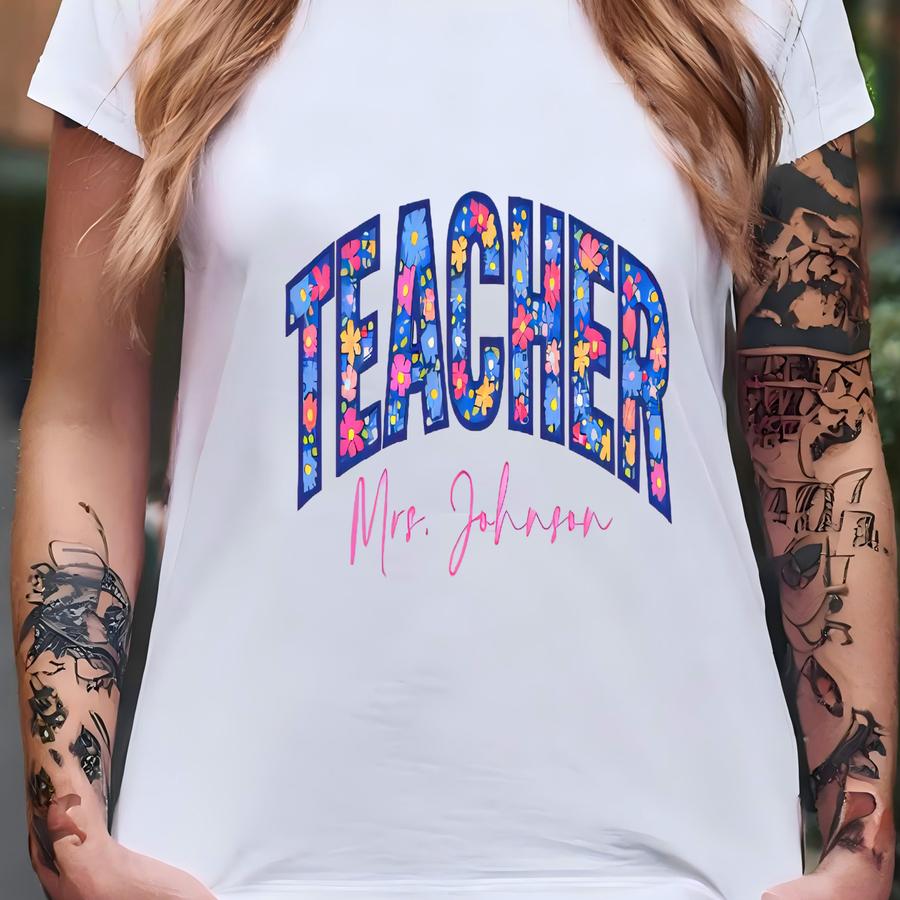 Custom Teacher Name Shirt, Floral Teacher Hoodie, Custom Teacher Gift, Back To School Shirt, Teacher Team Shirt, Teacher Tee T-shirt
