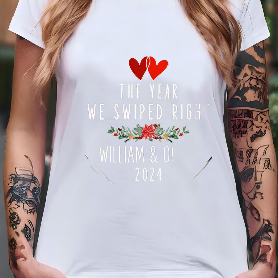 Custom The Year We Swiped Right Ornament, Custom Name Couples Glass Ornament, Online Dating Ornament,personalized 1st Valentine Dating Gifts T-shirt
