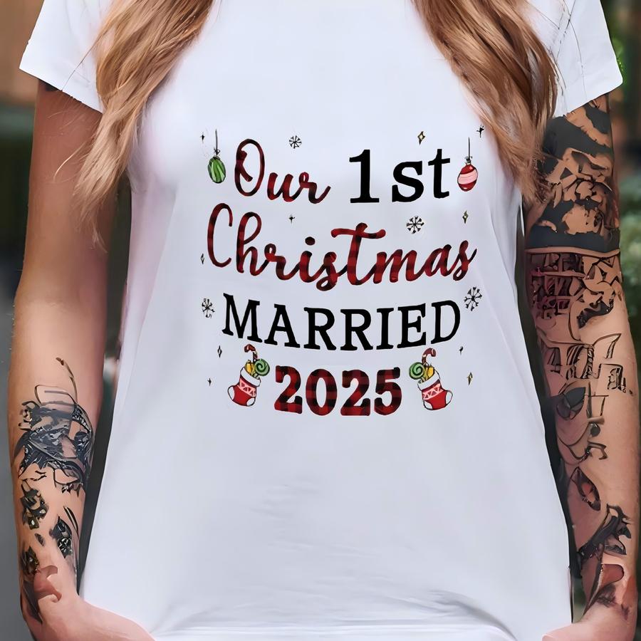 Custom Our 1st Christmas Married Mug, Anniversary Christmas Mug Gifts For Couples, Our 1st Christmas Together Couple Ornament, Newlywed Gift T-shirt