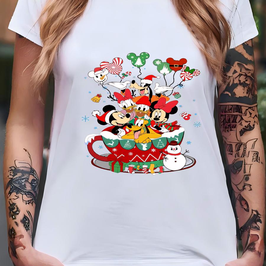 And Friends Christmas Tea Cup Shirt, Characters Balloons Christmas Tshirt, Family Holiday Trip Tee. T-shirt
