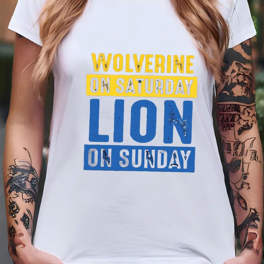 Wolverine On Saturday Lion On Sunday Sweatshirt, Michigan Football Hoodie, Game Day Sweater, Michigan And Detroit Fans Gift. T-shirt