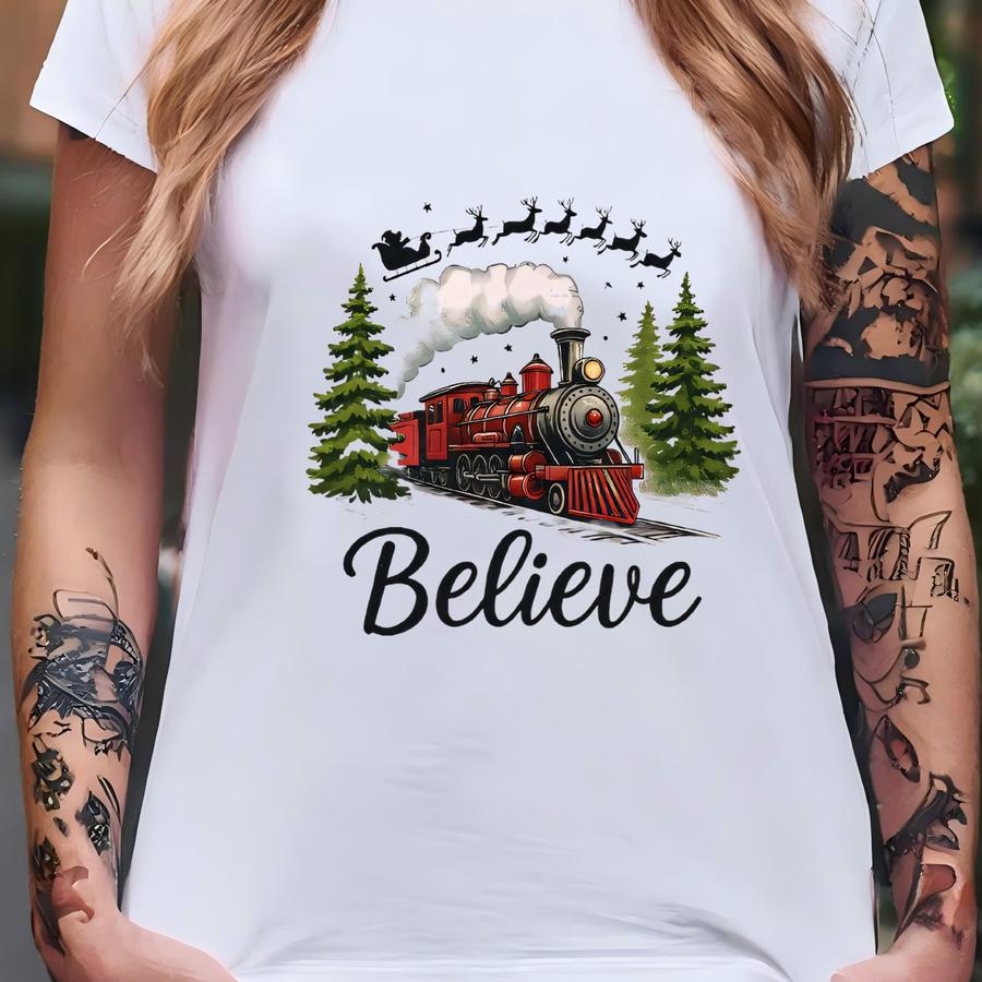 Believe North Pole Train Shirt, Believe Christmas Train Tshirt, Believe Polar Express Tee, North Pole Express Tee. T-shirt