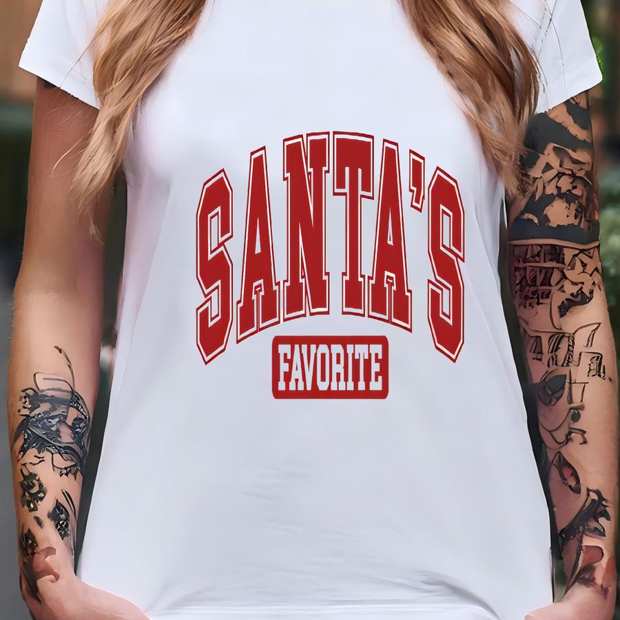 Santa’s Favorite Christmas Shirt, Funny Christmas Tee, Retro Holiday Shirt For Women, Festive Santa Graphic Tee Gift. T-shirt