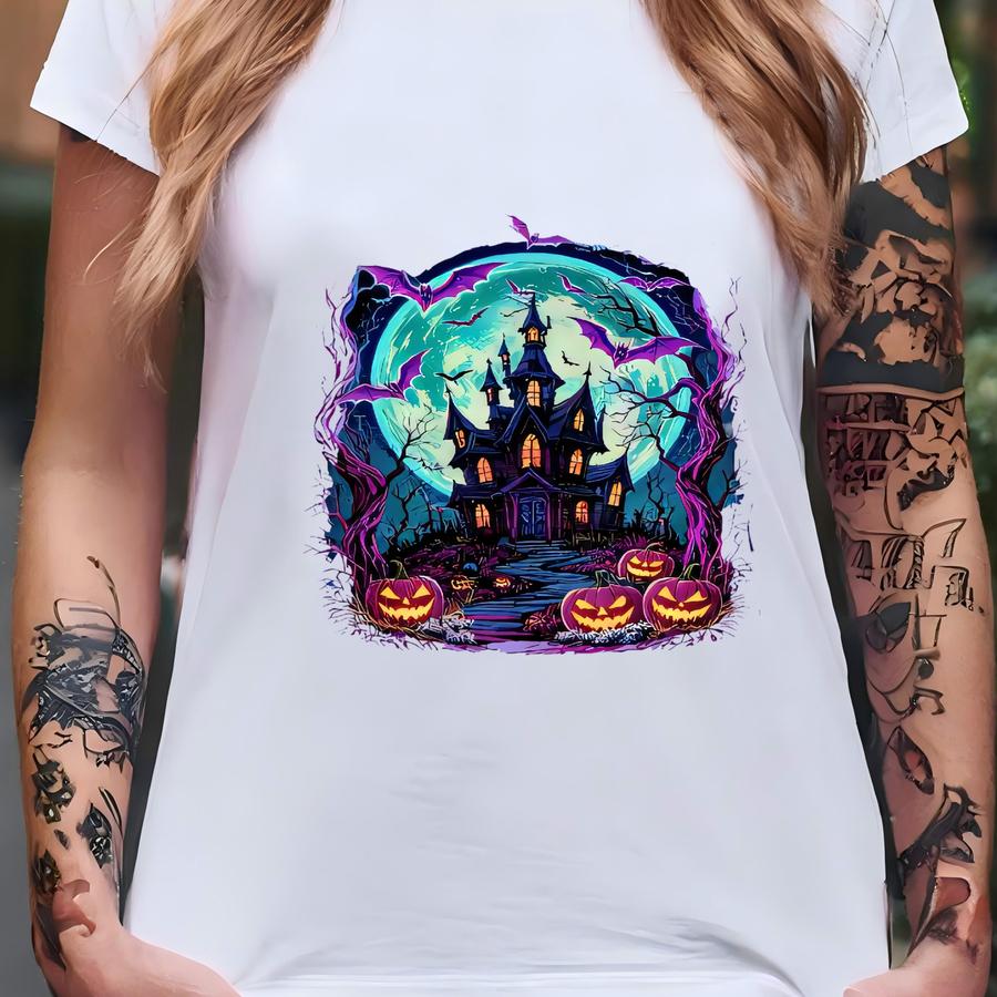 Spooky Halloween Scene Shirt, Bats And Haunted House Tshirt, Spooky Season Bats Tee, Halloween Party Hoodie, Witchy Pumpkin Shirt. T-shirt