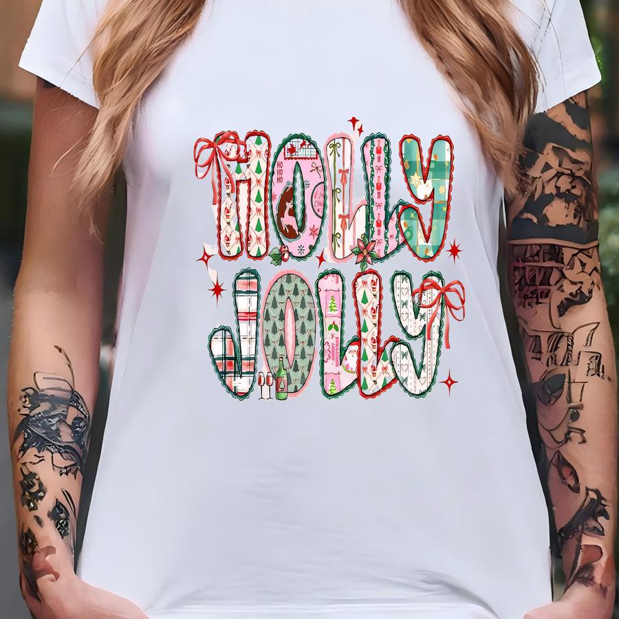 Preppy Holly Jolly Christmas Shirt, Comfor Colors Merry Christmas Bow Tshirt, Cute Christmas Shirt Women, Coquette Christmas Aesthetic Tee. T-shirt