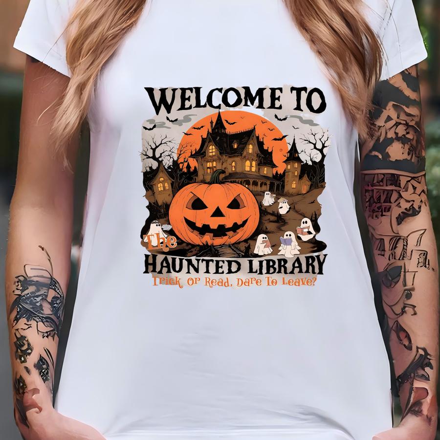 The Haunted Library Sweatshirt, Bookish Halloween Hoodie, Halloween Librarian Gift, Ghost Reading Books Sweatshirt, M Book Club Sweater. T-shirt