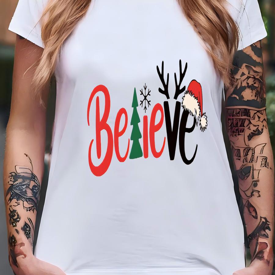 Believe Christmas Shirt, Family Christmas Tshirt, Matching Holiday Tee, Christian Christmas Gift, Womens Christmas Tee. T-shirt