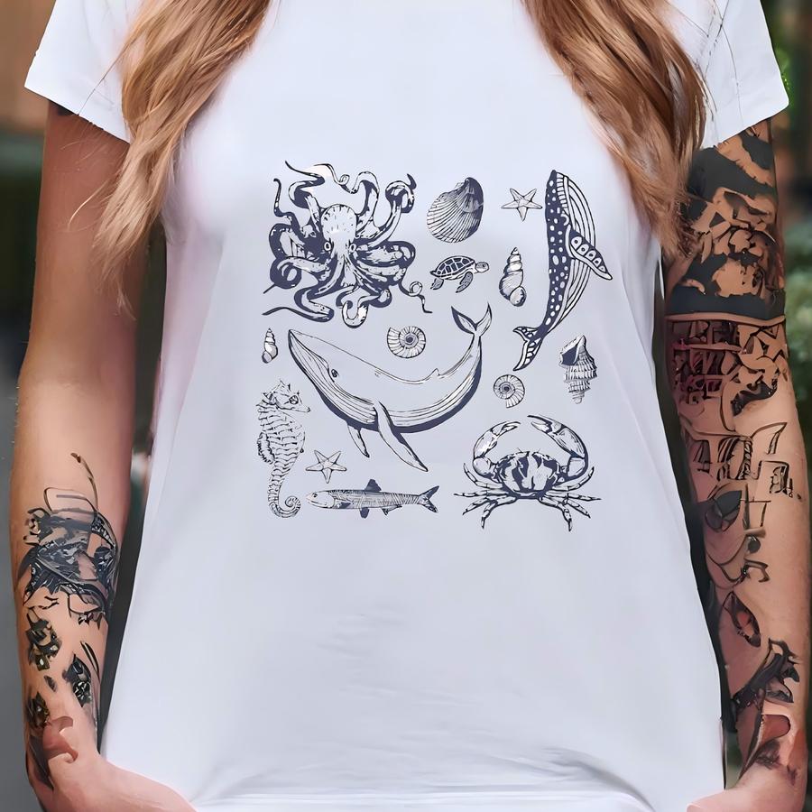 Sea Animal Sweatshirt, Whale Sweatshirt, Octopus Sweatshirt, Vintage Tattoo Sweatshirt, Orca Sweatshirt, Ocean Lover Gifts, Gift For Her T-shirt