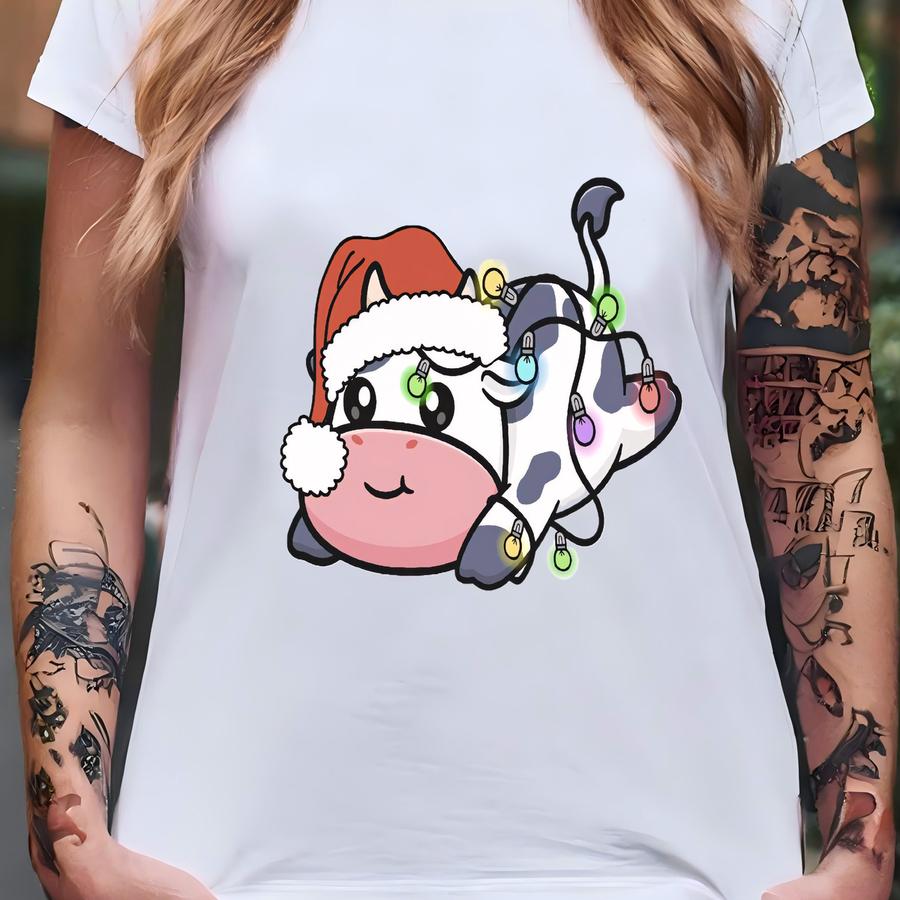 Cute Christmas Cow Sweatshirt,cow Lover Hoodie,christmas Sweatshirt,new Year Hoodie,christmas Gift,christmas Light Hoodie T-shirt