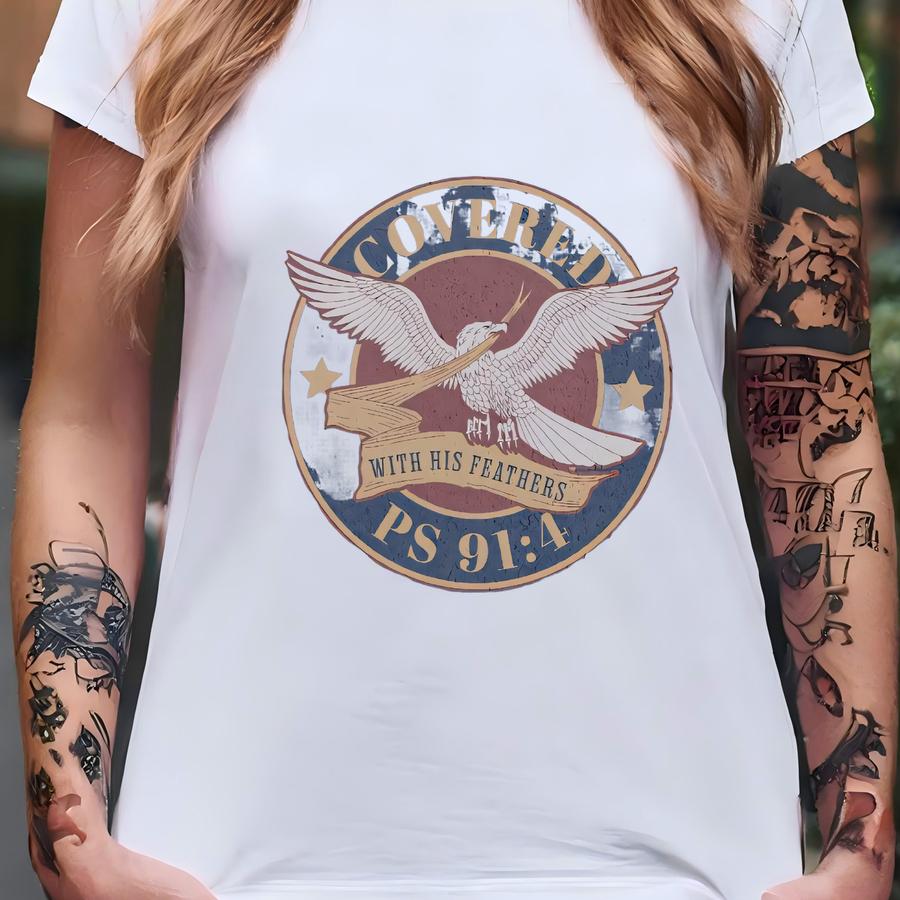 Christian Tshirt, Eagle Tshirt, Christian Apparel, Christian Shirt, Christian Shirt, Cover Of His Wings, Eagles' Wings, Bible Verse Shirt T-shirt