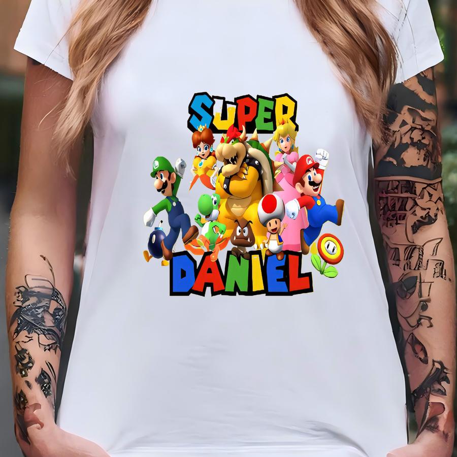 Custom Super Mario Backpack - Mario, Peach, Bowser, Luigi Drawstring Backpack - Birthday Party Favor - Mario Bros Kids Birthday Gift T-shirt