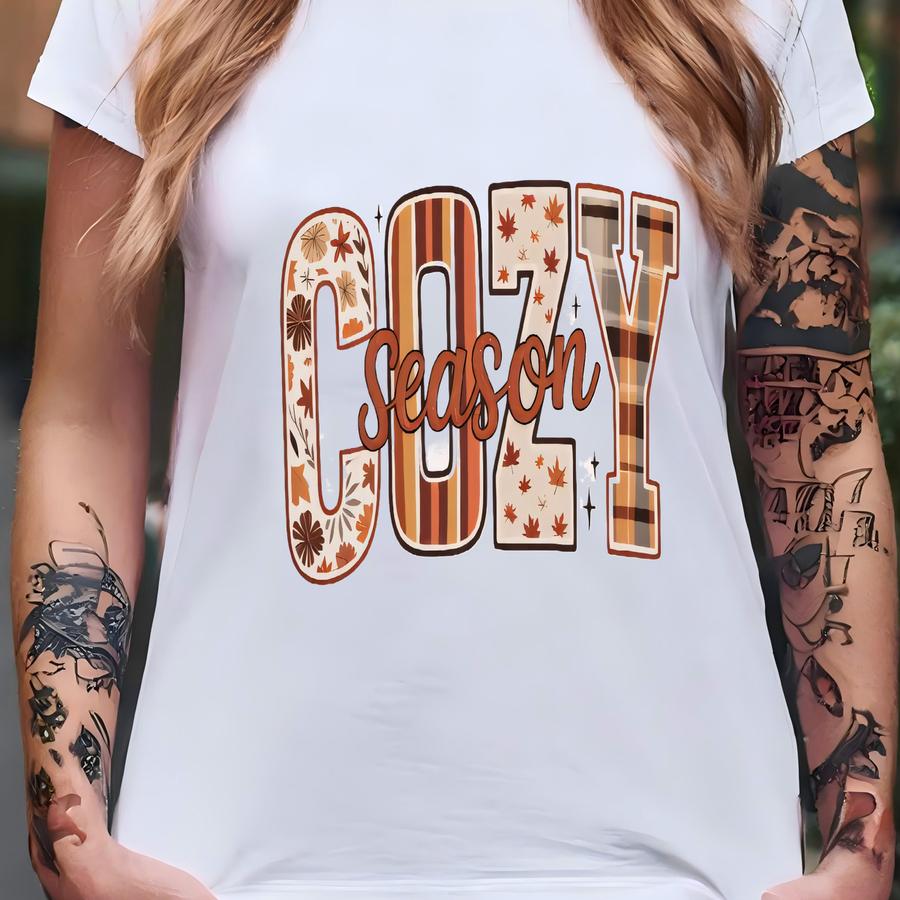 Cozy Season Fall Sweatshirt | Autumn Leaves Plaid Floral Print | Comfy Fall Pullover | Cute Thanksgiving Shirt | Cozy Season Shirt T-shirt