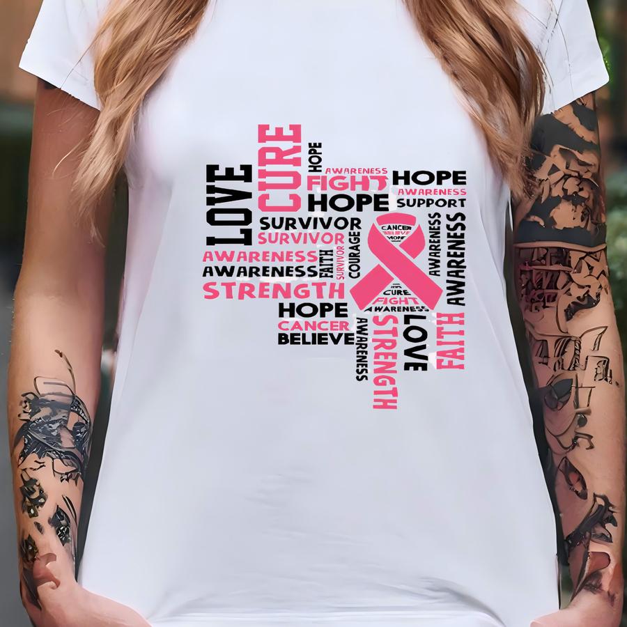 Breast Cancer Awareness Shirt – Pink Ribbon Word Tee, Hope Faith Love Cure Strength Survivor Support Hoodie For Women - Breast Cancer Gift T-shirt