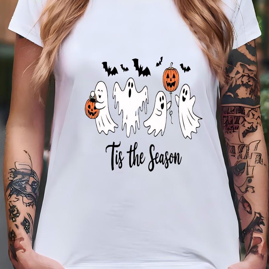 Cute Ghosts Halloween Shirt – “tis The Season” Graphic Tee – Spooky Season Fall Pumpkin Ghost Shirt - Halloween Shirt - Skeleton Gift T-shirt