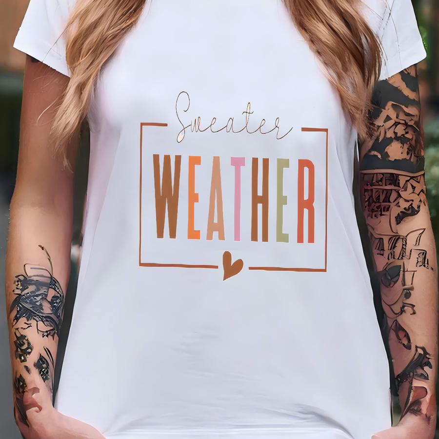 Sweater Weather Sweatshirt – Unisex Fall Pullover For Adults Kids – Cozy Autumn Sweater – Cute Thanksgiving Outfit – Multicolor Fall Shirt T-shirt