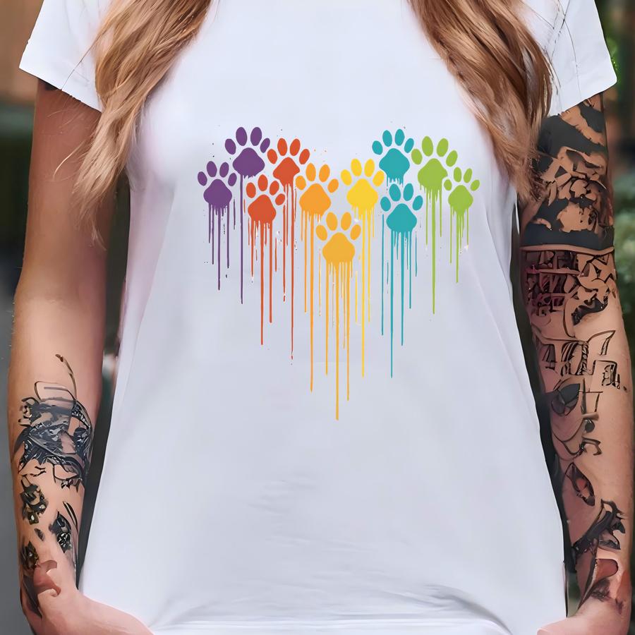 Colorful Dog Paw Heart Shirt, Dog Paw Shirt, Dog Lover Shirt, Dog Mom Shirt, Dog Mom Gift Shirt T-shirt