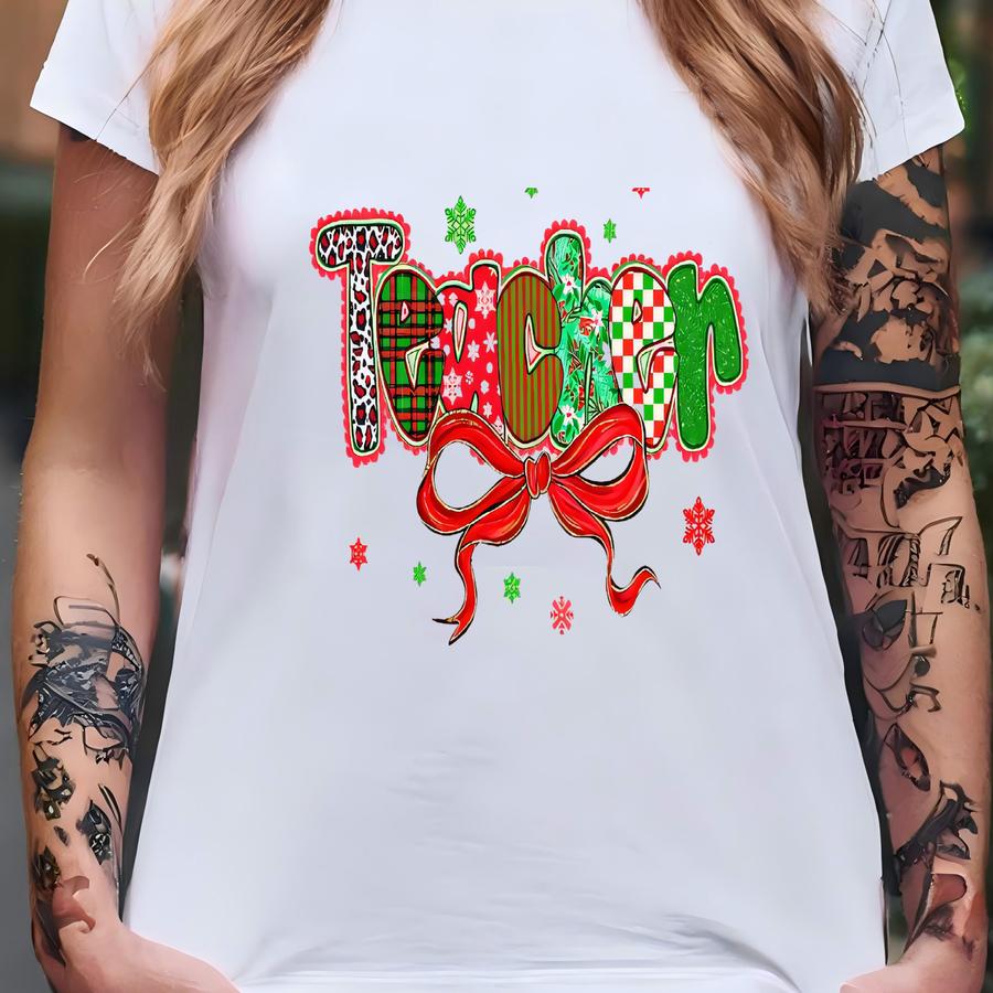 Coquette Teacher Christmas Sweatshirt, Merry Christmas Tshirt, Teacher Appreciation Hoodie ,gift For Teacher, Lace Teacher Shirt T-shirt