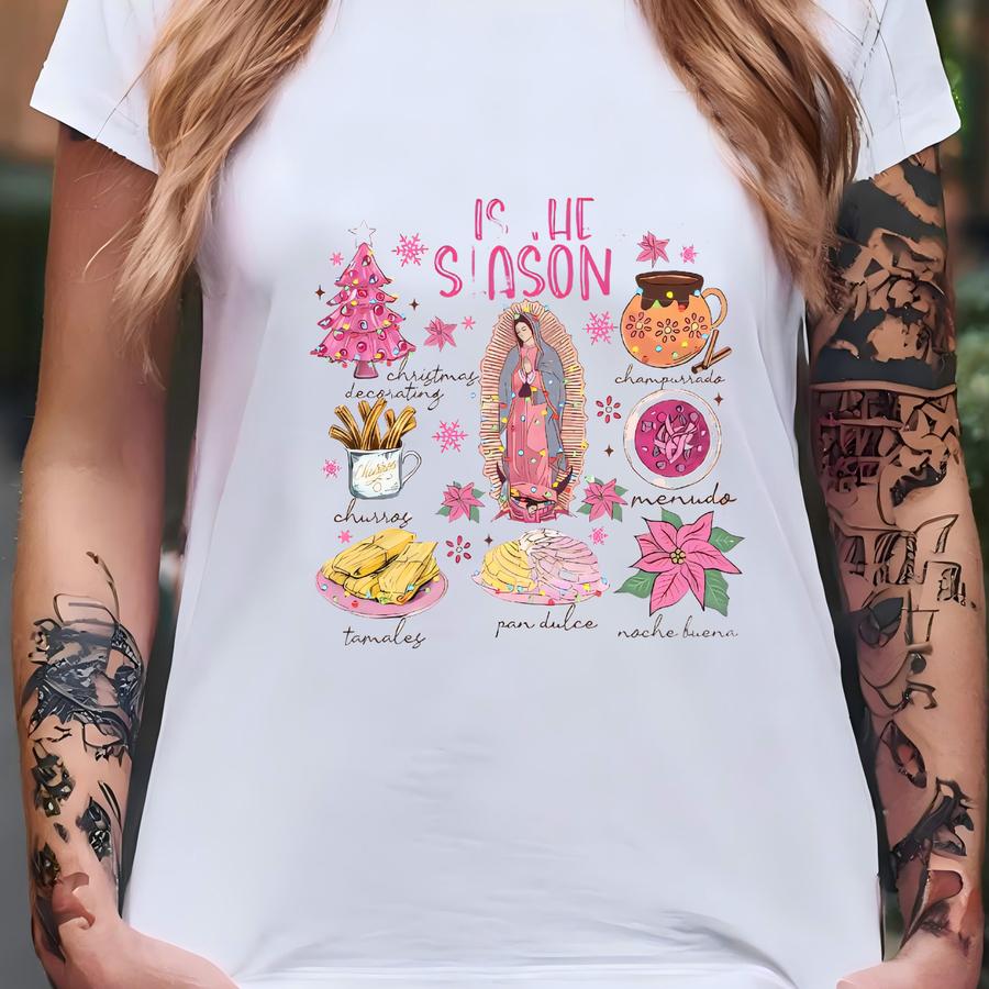 Coquette Christmas Tis The Season Tshirt, Mexican Christmas Sweatshirt, Calories No Cuentan, Pink Spanish Christmas, Tuki Donkey Hoodie T-shirt
