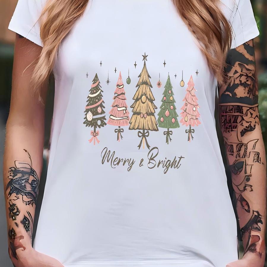 ® Christmas Tree Shirt Merry And Bright Christmas Tree Tshirt Cute Women's Holiday Tee T-shirt