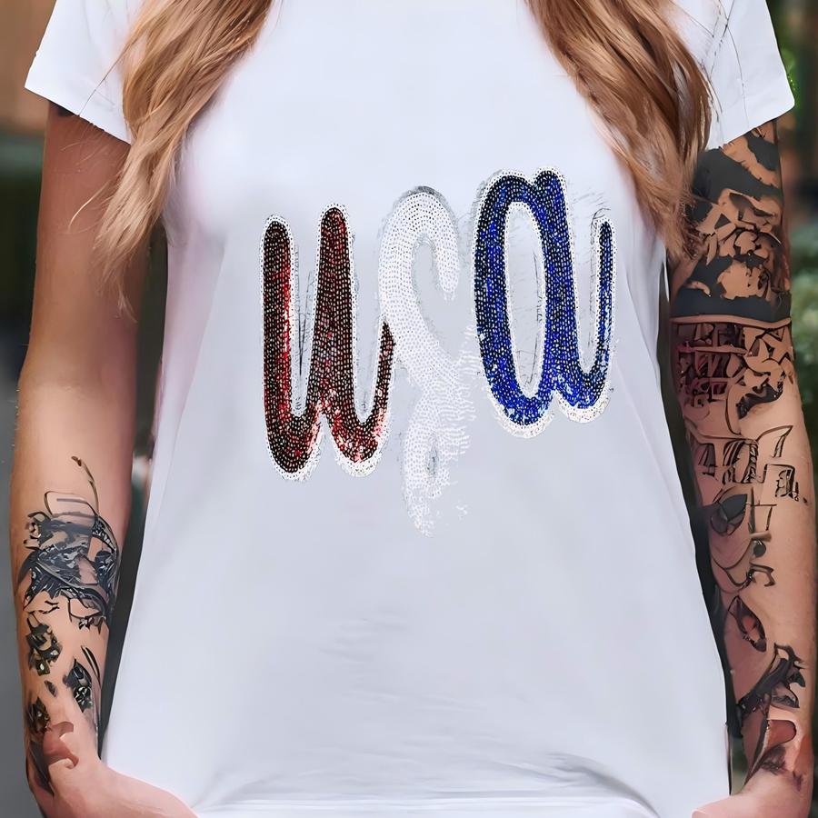 Usa Sequins Patch Shirt - 4th Of July Shirt - America Shirt - America Flag Shirt - 4th Of July - Independence Day - Chenille Patch T-shirt