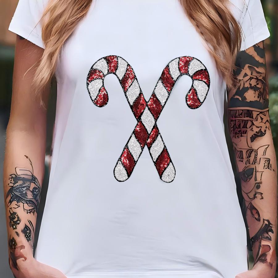 Sequin Candy Cane Sweatshirt - Cute Christmas Sweatshirt - Sequins Candy Cane Sweatshirt - Candy Cane Sweatshirt - Christmas Sweatshirt T-shirt