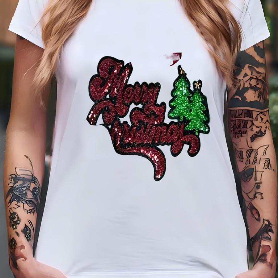 Red Merry Christmas Sequin Christmas Sweatshirt - Chenille Sweatshirt - Christmas Sweatshirt - Merry Christmas Sequins - Christmas Sweater T-shirt
