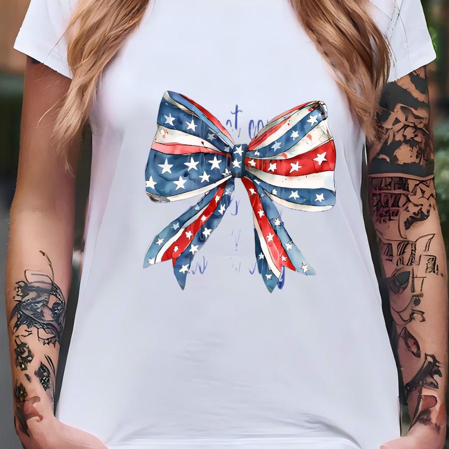 Coquette Usa Bow Shirt - America Bow Shirt - July 4th - Memorial Day Shirt - Usa Shirt - Patriotic Bow Shirt - American Flag Shirt - Womens T-shirt