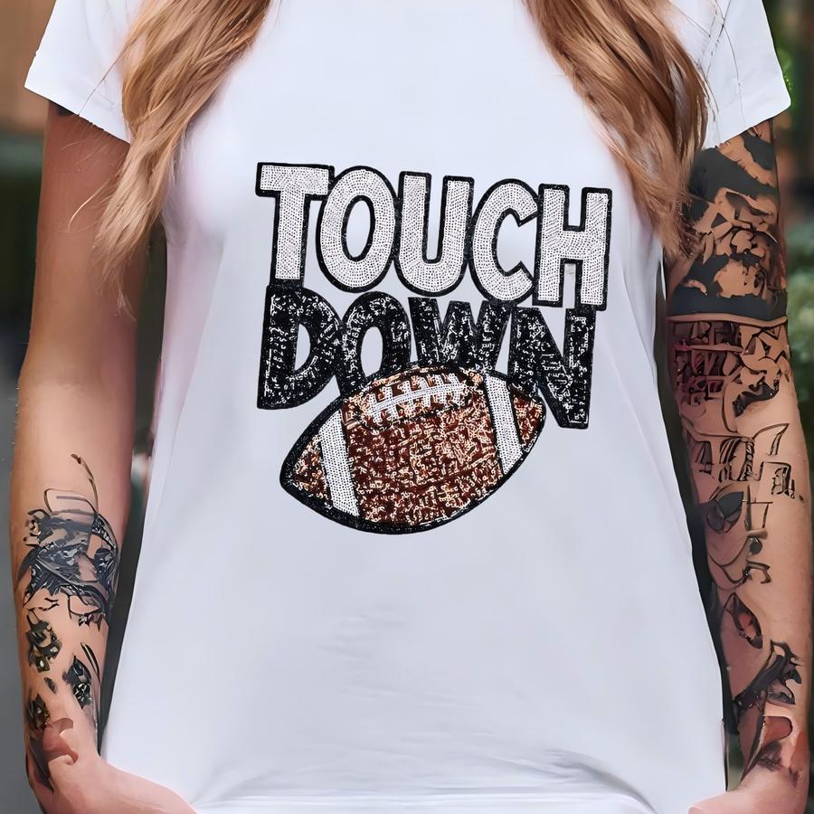 Touchdown Sequins Football Patch Crewneck Sweatshirt - Chenille Patch Sweatshirt - Football Sweatshirt - School Spirit - Highschool Football T-shirt
