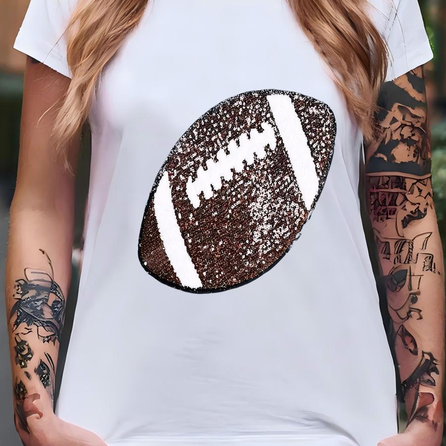 Sequins Football Chenille Patch Crewneck Sweatshirt - Chenille Patch Sweatshirt - Football Sweatshirt - School Spirit - Highschool Football T-shirt