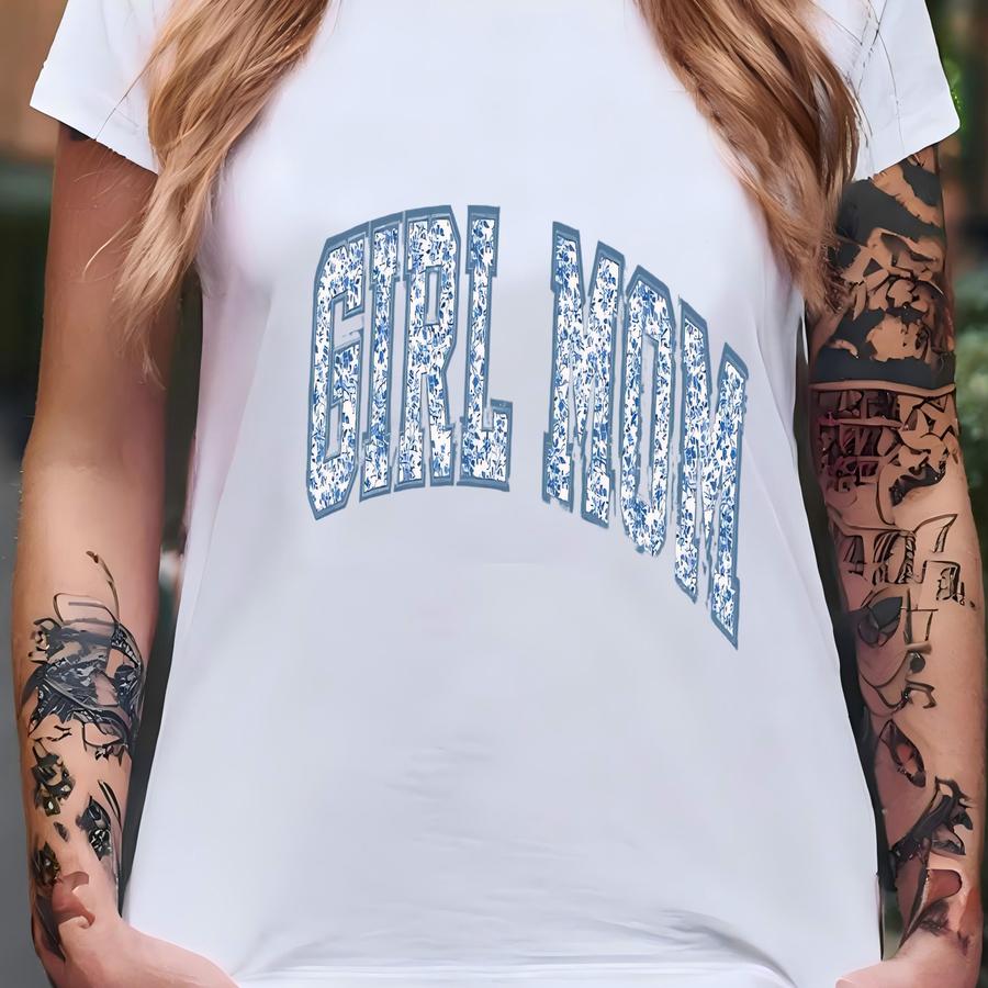 ® Girl Mom Shirt, Toile Floral Girl Mama Shirt, Pregnancy Announcement Girl, Mama Of Girls Shirt, Gender Reveal Tee, Cute Mom T-shirt