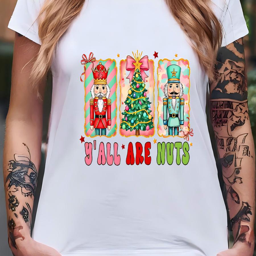 Retro Nutcracker Christmas Tee, Funny Holiday Shirt, Y'all Are Nuts Hoodie, Christmas Party Outfit, Festive Winter Apparel T-shirt