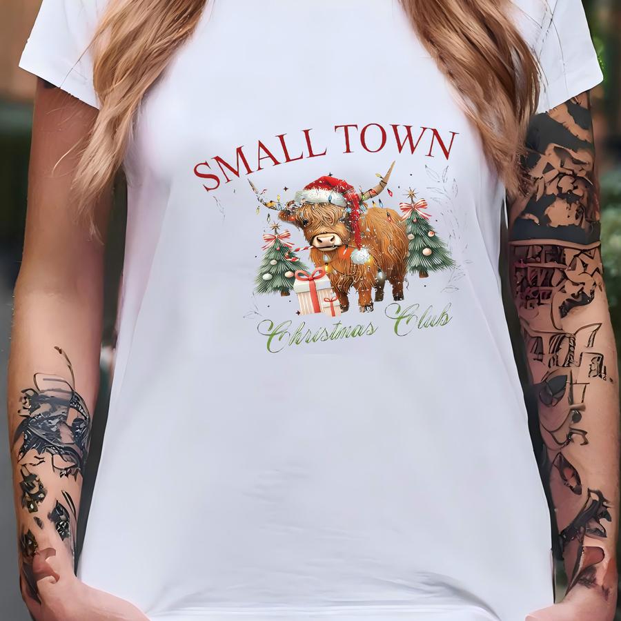 Small Town Christmas Highland Cow Tumbler, Personalized Christmas Club Cup, Holiday Gift For Her, Custom Name Cow Lover Cup T-shirt