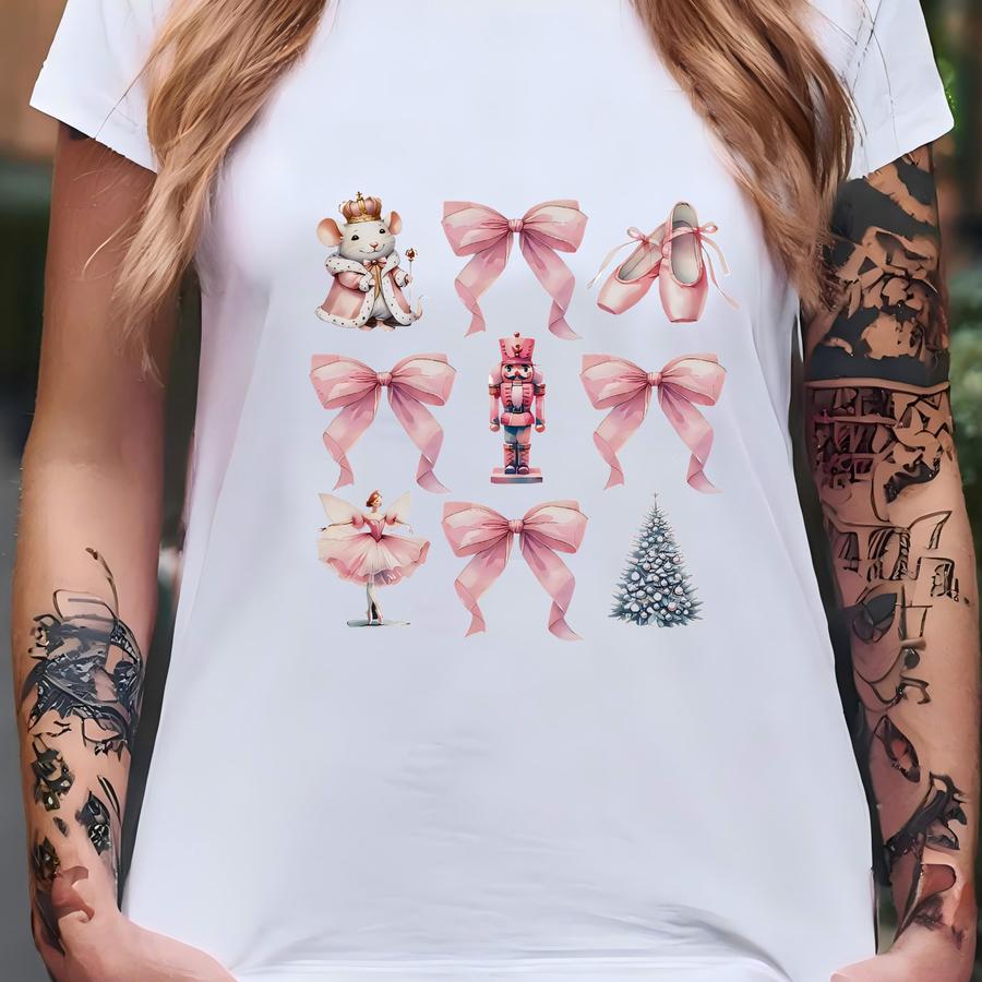 Ballet Nutcracker Christmas Shirt, Pink Bows Holiday Tee, Ballerina Christmas Tree Top, Dance Teacher Christmas, Girls Christmas Party Top T-shirt